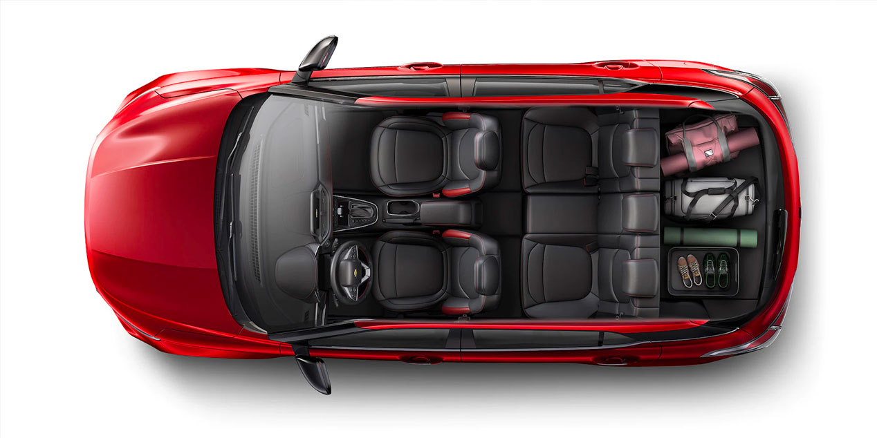 Interior en color negro con exclusivos distintivos en rojo